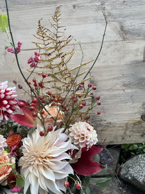Ich arbeite im Rhytmus der Natur und komibiniere florales Handwerk mit natürlichen Gestaltungselementen. Plastikfreie Verpackungen, kurze Transportwege und frische, saisonale Blumen sind für mich selbstverständlich.